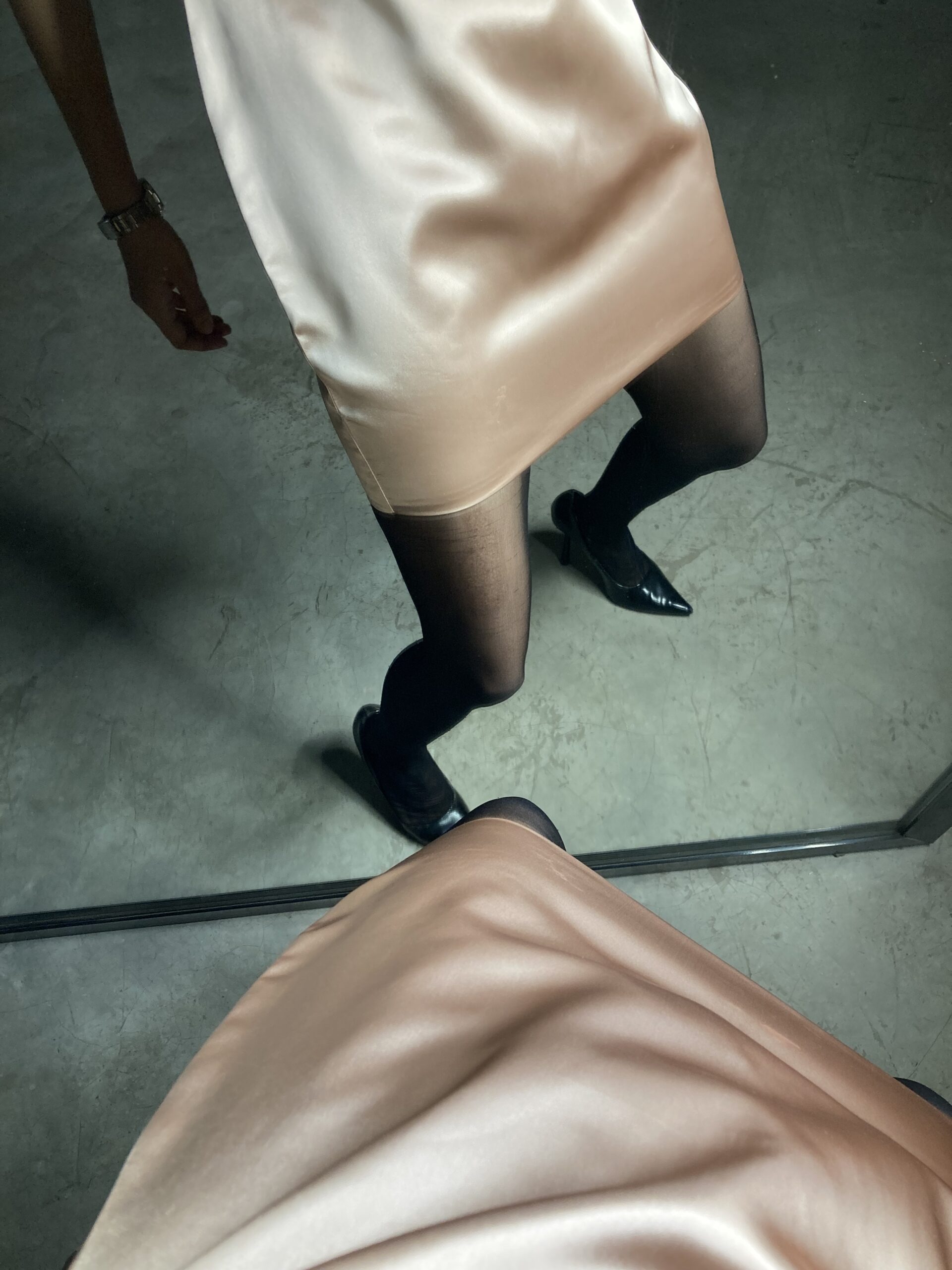 The Peach Dress is a 30” in length satin beauty in a soft matte peach finish, flowing gently on your skin like a warm sunset, designed to make you feel calm, confident, and quietly radiant. With a halter neckline, delicate bust tucks, and an invisible back zipper, it shapes you effortlessly, shown here in Size 4 for a smooth, flattering fit. This is the dress you slip into when you want to feel feminine.