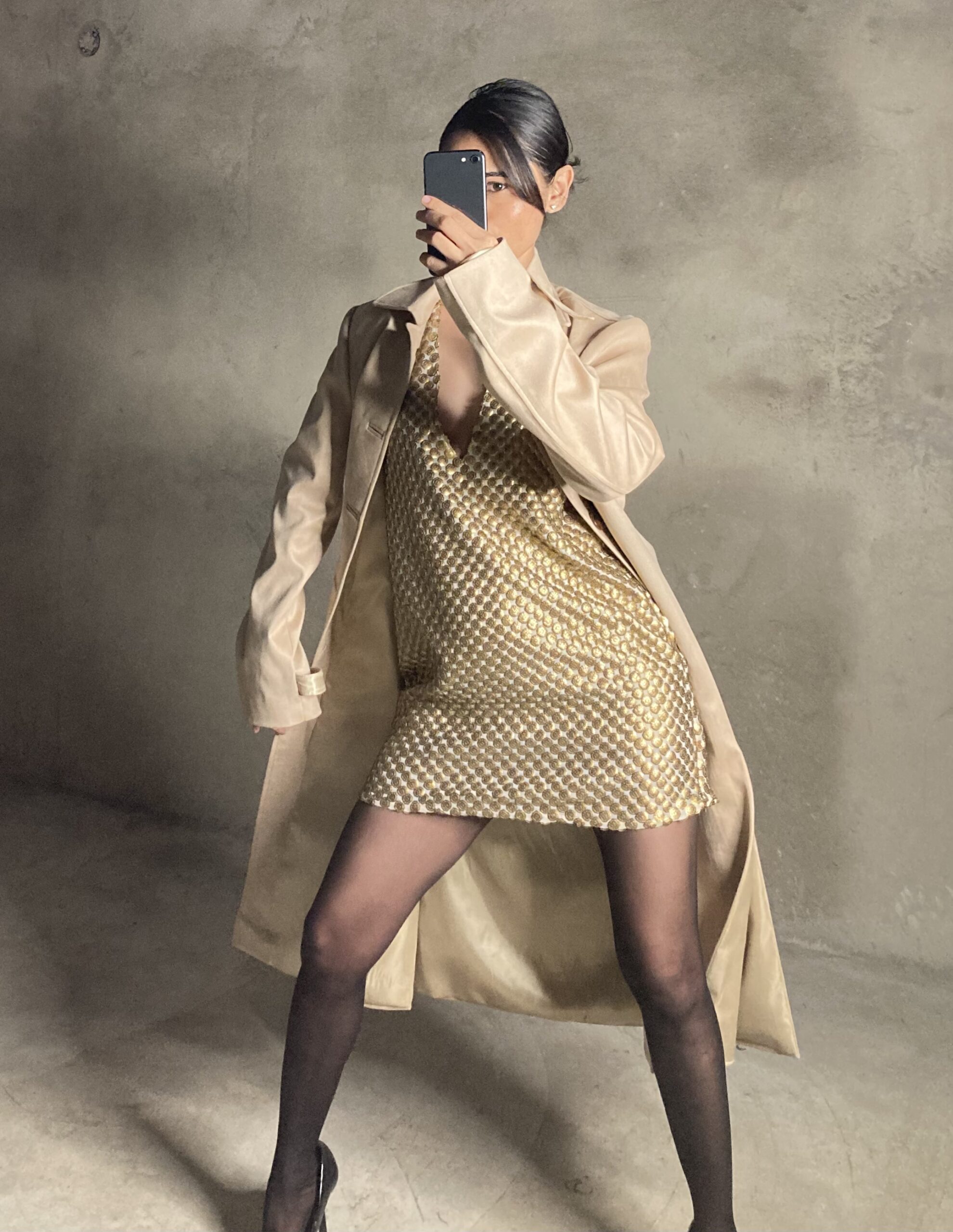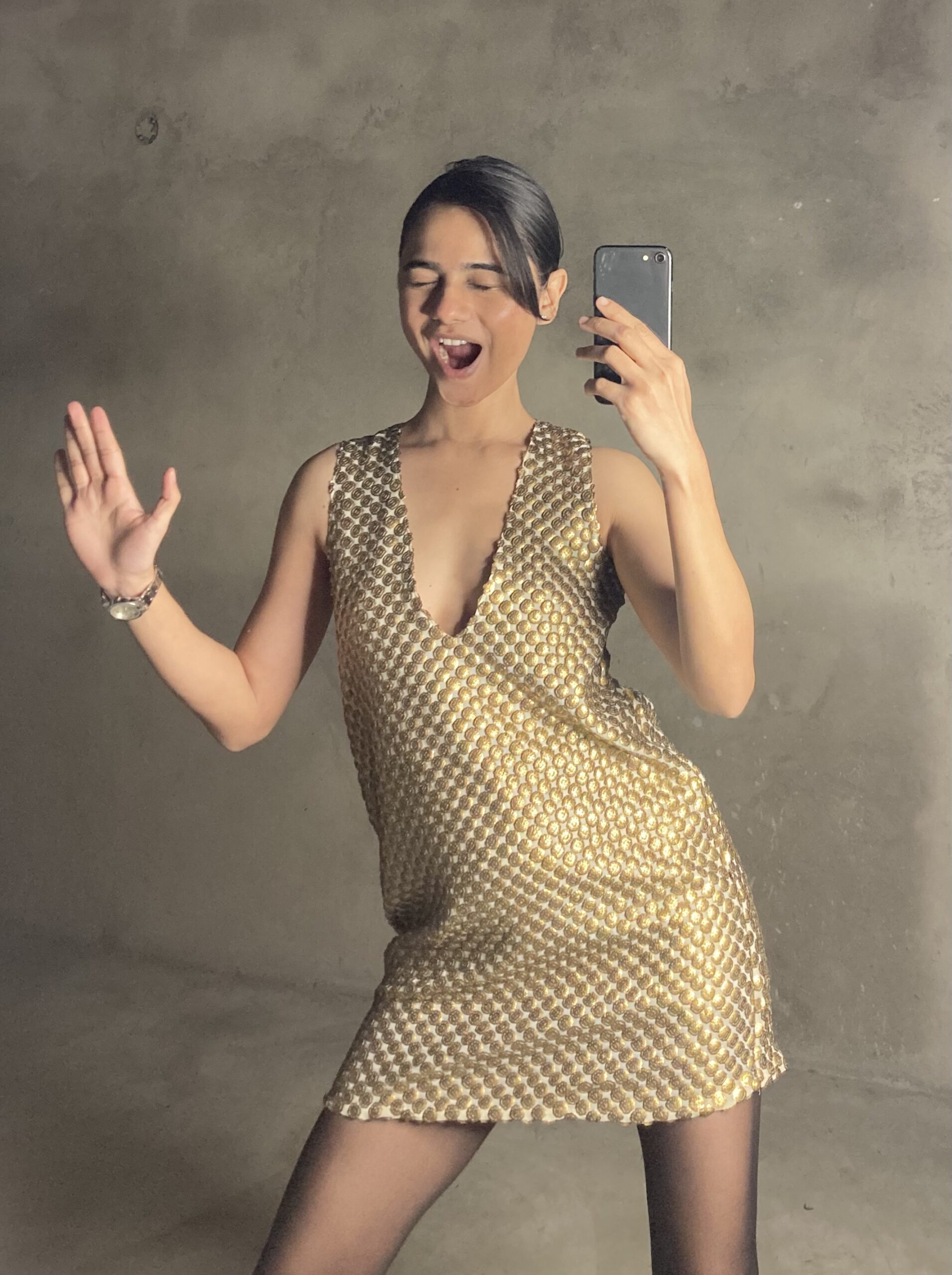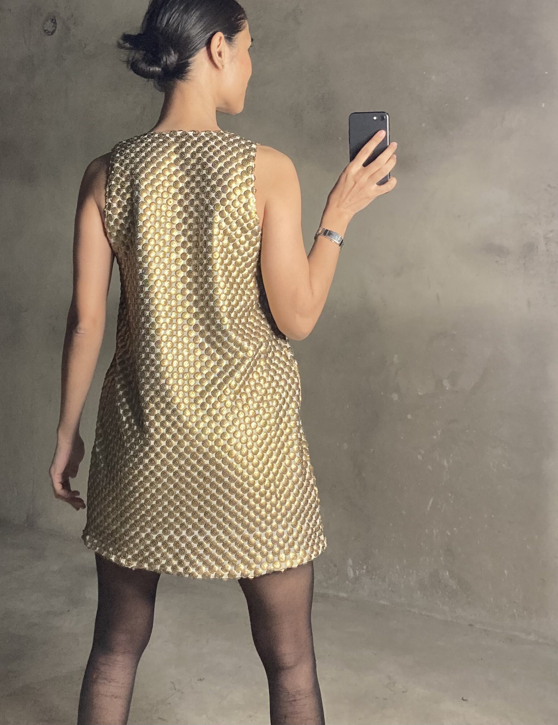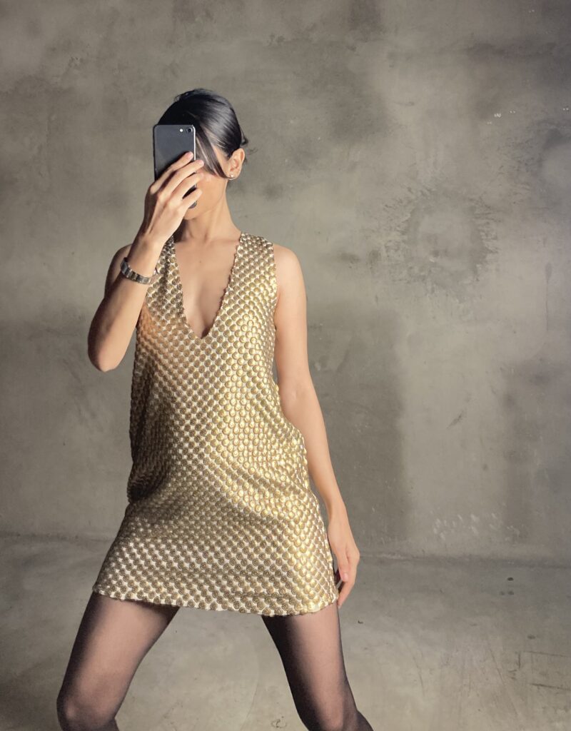 Gold Pleated Mini Dress