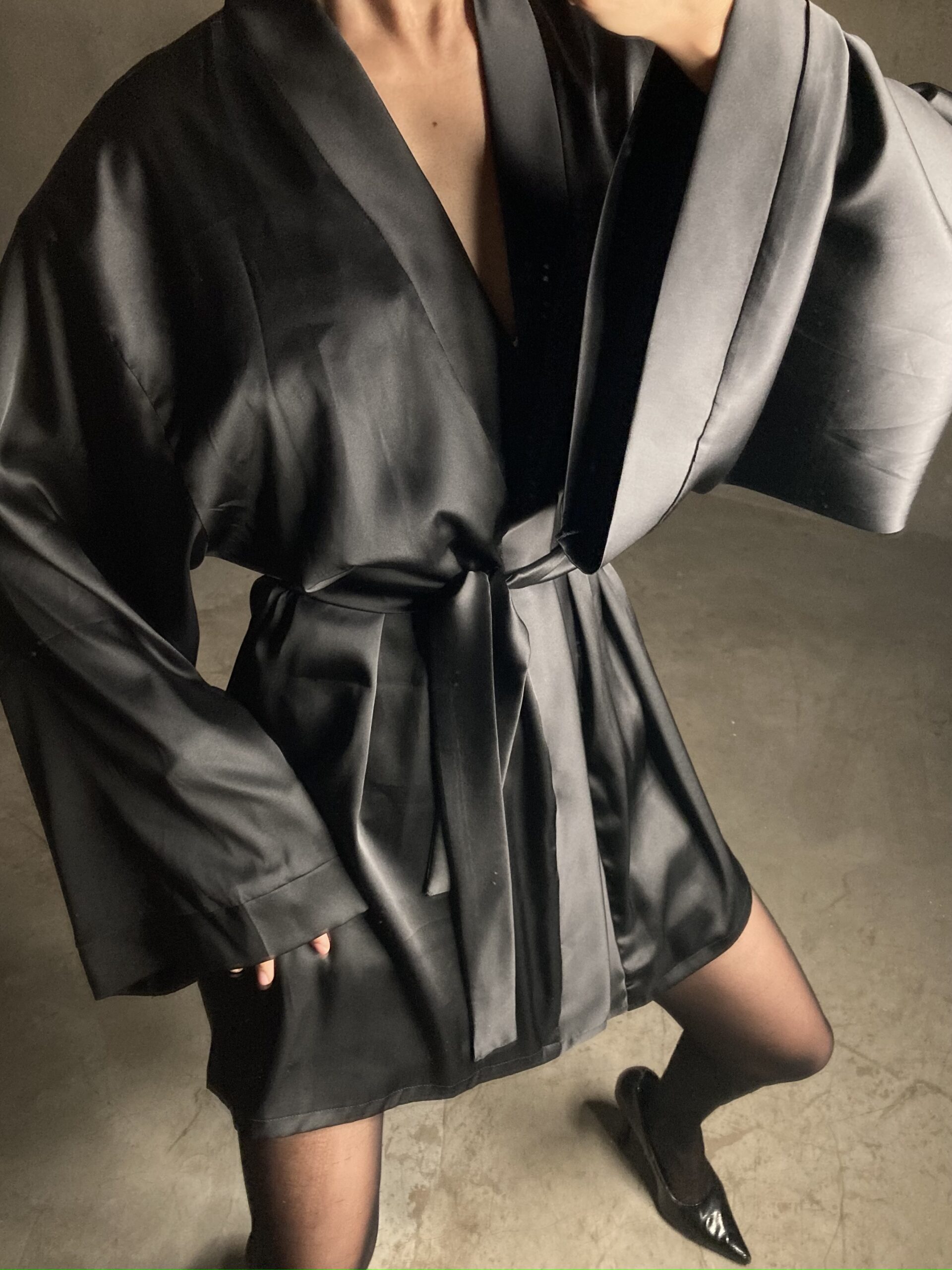 The Rest Ritual Robe in Matt black is 30” in length, made in imported silk, soft as malai, draping lightly over the body like warm air on bare skin. Cut in an easy free-size fit, it moves with you, rests on you, and disappears into comfort. This is the layer you reach for when calmess becomes your power and rest becomes your ritual.